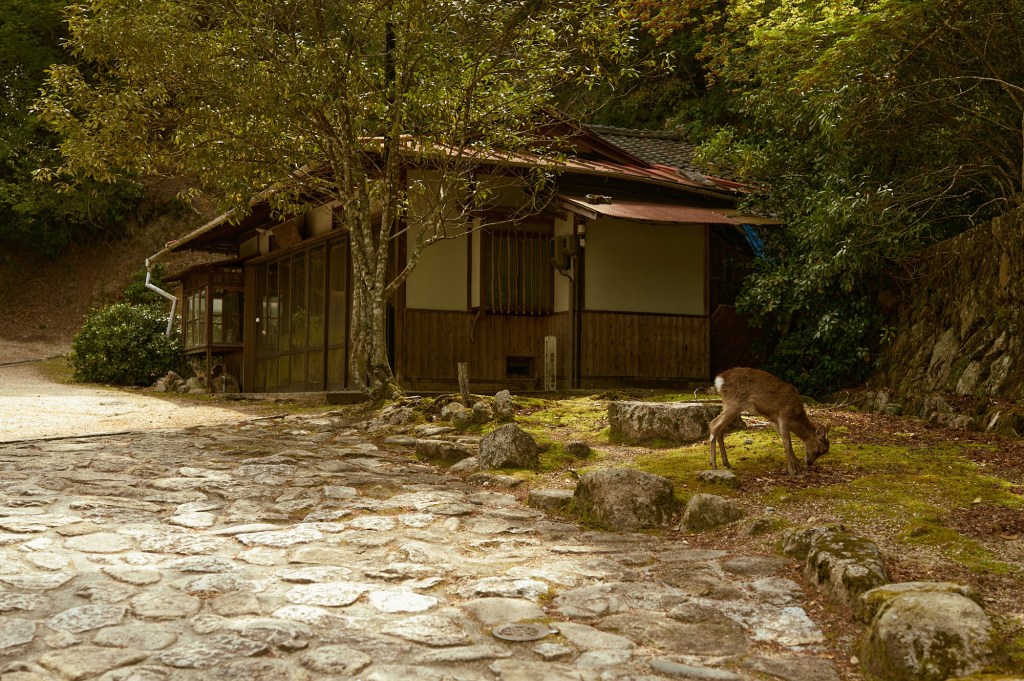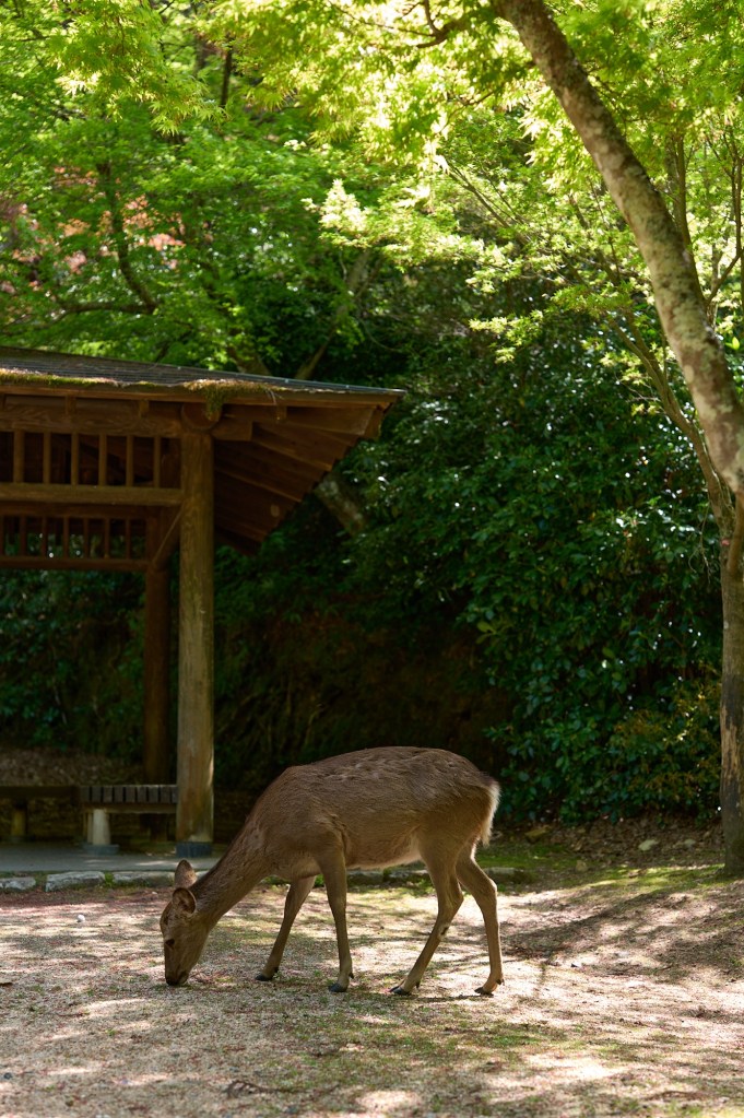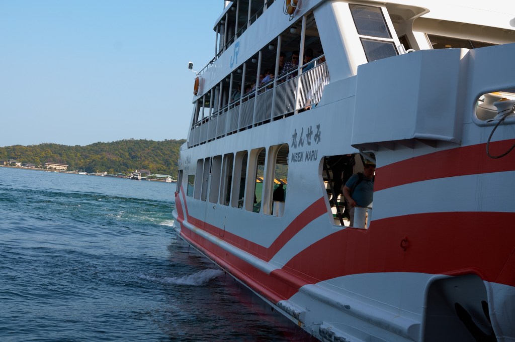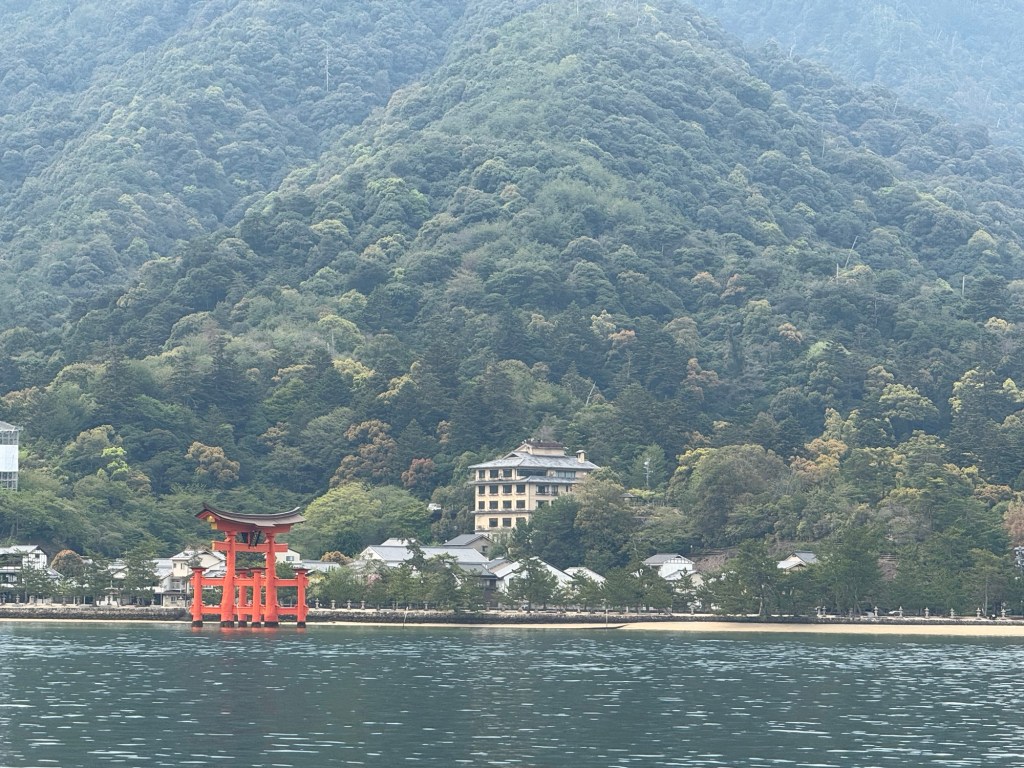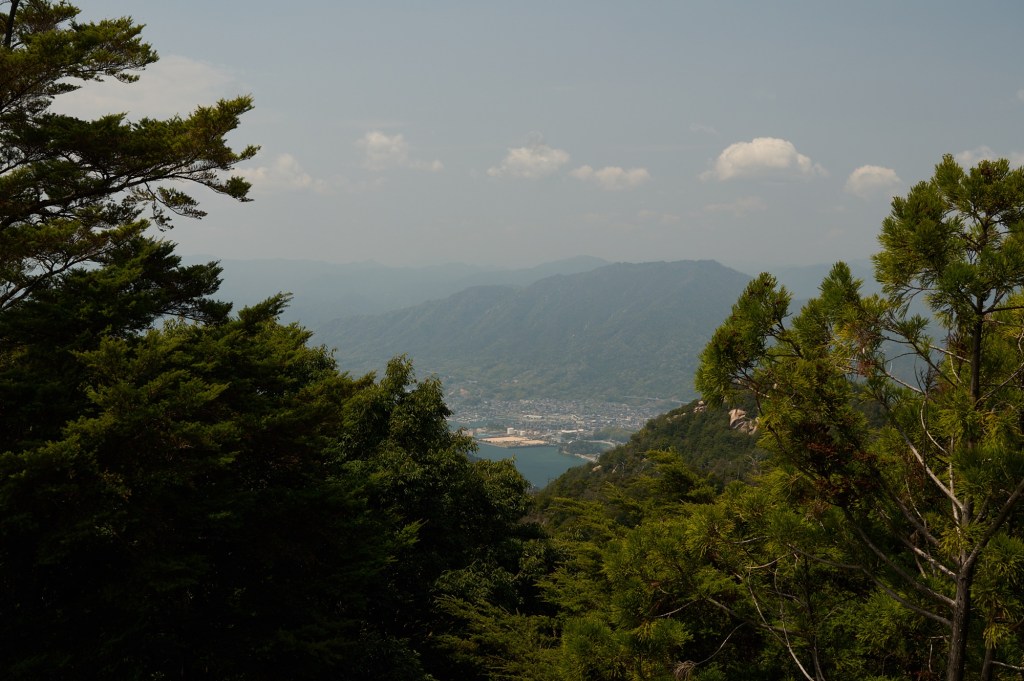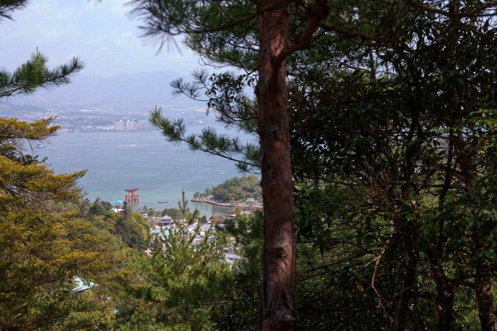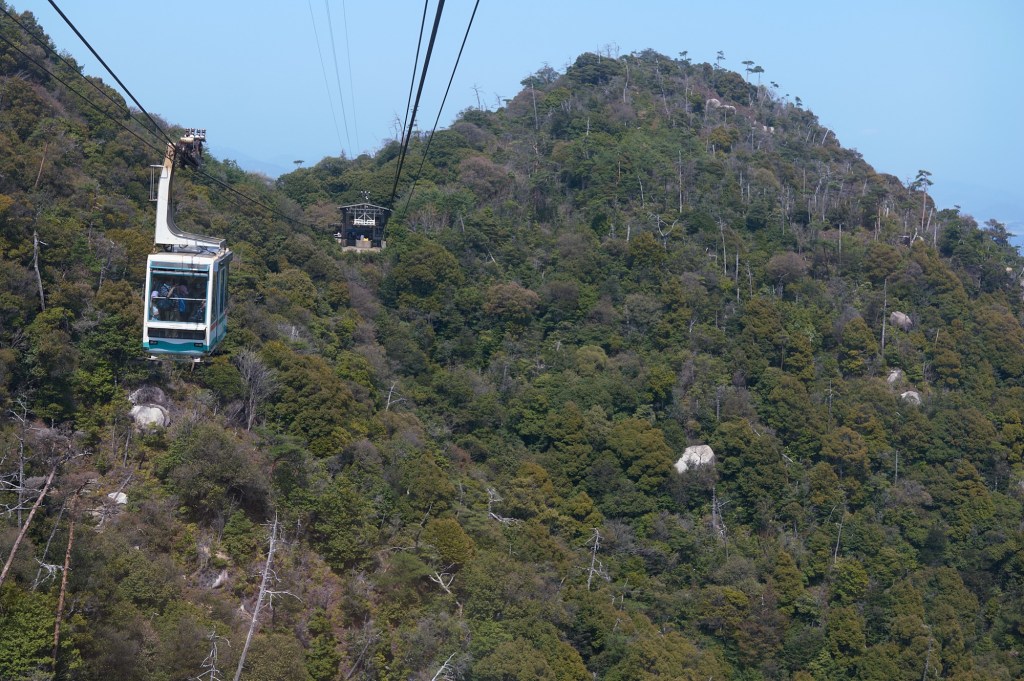 Den zweiten Tag unseres Hiroshimaaufenthaltes widmeten wir nicht nur Hiroshima selbst sondern vorwiegend der unweit gelegenen Insel Miyajima. Mit U-Bahn und lokalen Zuegen erreichten wir den Ferry-Hafen. Hier ging es dann in knapp 10 Minuten mit der Faehre in den fruehen Morgenstunden auf die Insel. Neben frei laufenden und zahmen Rehen empfing uns die Insel mit seinem tropischen Klima. Knapp 25 Grad und 80% Luftfeuchtigkeit waren Ueberredung genug, um Jacke und Hemd auszuziehen. Das weisse Tshirt sollte spaeter nur noch gut zum Auswringen sein, denn auf knapp 2 Kilometern erklammen wir 500 Hoehenmeter. Treppe um Treppe, erkaempften wir uns den Weg nach oben und waren, Morgenstund sei Dank, hier fast voellig allein. Unterwegs belohnte uns der Weg mit Schatten, kleinen Wasserlaeufen, tropischen Vogelgesaengen. Damit keine Langweile aufkommt war der Weg auch mit giftigen Schlangen besetzt. Zumindest ein kleines Exemplar trafen und umgangen wir auf unserem Aufstieg. Erst spaeter wies uns ein Schild auf die toedliche Gefahr hin, Ein Grund dann doch auch mal oefters die Augen nach unten zu richten. Am Gipfel angekommen trat etwas Enttaeuschung ein, denn das diesige Wetter liess kaum klare Blicke nach unten durch. Auf dem Weg zurueck (dieses Mal mit der Seilbahn) bestaunten wir dann noch einmal das Itsukushima Tor ehe wir uns nach einer kleinen Staerkung wieder auf den Nach-Hotel-Weg machten.